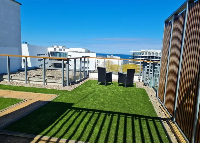 Das Apartment am Strand Apartamentyprzymorzu Olympic Park Z Prywatnym Tarasem Z Widokiem Na Morze Kolberg liegt 6 Minuten Fußweg vom Oststrand entfernt sowie in unmittelbarer Nähe zu verschiedenen Sehenswürdigkeiten der Gegend. Von einer Terrasse des Apartments aus können die Gäste einen Küsten- Blick aufs Meer genießen.